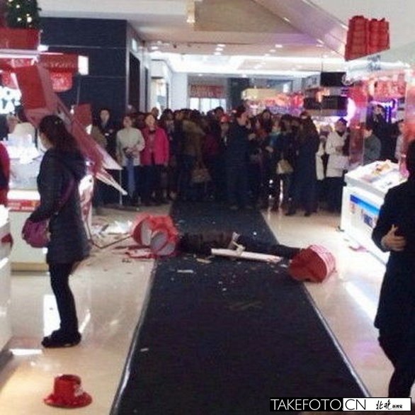 事發(fā)在徐州的國際購物中心,根據(jù)徐州市鼓樓公安分局調(diào)閱商場監(jiān)視器發(fā)現(xiàn),在12月7日下午3點多,該男從商場南門進入。警方詢問圍觀民眾,都表示男子是自殺跳樓,而原因竟然是女友想買東西,男子嫌太貴。由于事情過于離奇,就連英國每日郵報也大幅報導。