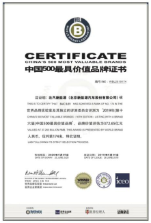 北汽新能源二度上榜中國500最具價值品牌榜單