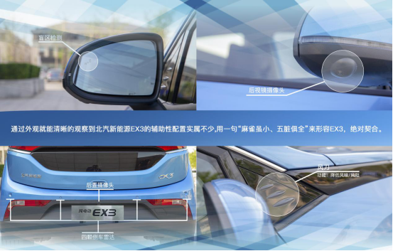 同時,北汽新能源還配備了盲區(qū)監(jiān)測、前后以及兩側(cè)后視鏡共計(jì)4個攝像頭組成的360度影像系統(tǒng)、前后各6顆雷達(dá)等行車安全性配置。還有一個不常見的A柱區(qū)域的三個風(fēng)刀設(shè)計(jì),在一定程度上能夠降低風(fēng)阻與風(fēng)噪,EX3在這些細(xì)節(jié)設(shè)計(jì)上要領(lǐng)先元EV535不止一點(diǎn)。
