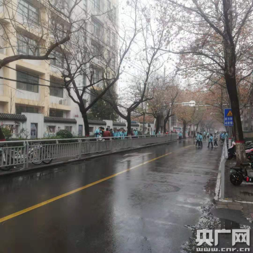 第一步遠距離控制,削弱高峰時段校門口的“大疙瘩”、“長蛇陣”。群英路學(xué)校門前是一條不足十米寬的混行道路,交通平峰時段的通行勉強湊合,到了接送學(xué)生的高峰期,簡直就成了摩肩接踵的集貿(mào)市場,前期實地勘察得知,校門口兩端不出百米均有橫向道路,而且道路條件好過群英路,可以在不影響通行的情況下臨時借道停車,但需求仍然有缺口,張愛華又與校方商量,年級之間可否短暫錯時放學(xué),學(xué)校方也深受其擾,一聽說交警找上門,馬上發(fā)話大力支持。為避免放學(xué)時學(xué)生無序走動,張愛華又與轄區(qū)辦事處、沿街商戶商議,在學(xué)校門口左右兩側(cè)人行道設(shè)立矮護欄,或臨時擺放隔離錐,讓學(xué)生出校門后只能左右行走,這樣家長也放心,馬路也不會被阻斷。