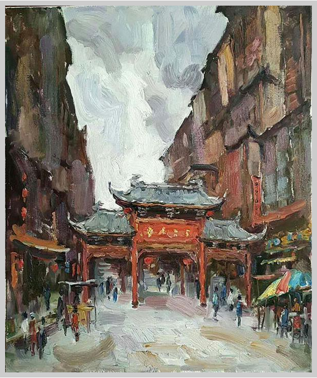 茅臺(tái)鎮(zhèn)是第二次來(lái),第一次是走馬觀花的參觀,這一次得益于貴州旅游在線的邀請(qǐng),能深入其中,深表感謝。茅臺(tái)歷來(lái)都是貴州的經(jīng)濟(jì)強(qiáng)鎮(zhèn),來(lái)了以后名不虛傳,滿城飄香,建筑整潔,街道干凈。雖然此次采風(fēng)時(shí)間不長(zhǎng),但時(shí)間很緊湊。今天寫生,強(qiáng)光日曬下,每個(gè)畫家都非常盡職盡興,每人起碼都畫了兩幅寫生作品。身在其中,我也被這樣的氛圍所感動(dòng)。
