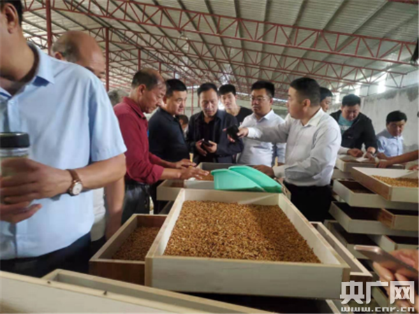 唐河縣大河屯鎮(zhèn)秦崗村扶貧車間,參加觀摩人員紛紛向負(fù)責(zé)人詢問養(yǎng)殖技術(shù)、效益及發(fā)展前景(央廣網(wǎng)發(fā) 通訊員王充 供圖)