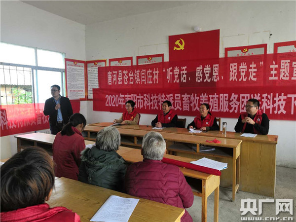 為全面實施創(chuàng)新驅動發(fā)展戰(zhàn)略和鄉(xiāng)村振興戰(zhàn)略,進一步打贏脫貧攻堅戰(zhàn)、促進農(nóng)村經(jīng)濟社會持續(xù)健康發(fā)展。日前,南陽市科技特派員畜牧養(yǎng)殖服務團隊,有團長李生濤率畜牧特派員一行4人,深入到蒼臺鎮(zhèn)4個貧困村進行養(yǎng)殖技術培訓,到農(nóng)戶家中進行現(xiàn)場指導,幫助脫貧戶靠養(yǎng)殖致富,實現(xiàn)鄉(xiāng)村振興。