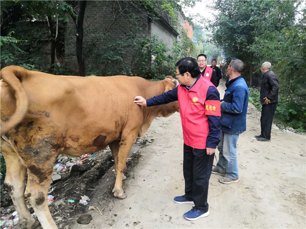 團長李生濤在丁灣培訓結束后,正準備前往后灣開展養(yǎng)殖技術指導,但心急的貧困養(yǎng)殖戶丁記發(fā)在村委會門口就把他攔了下來,咨詢養(yǎng)殖中遇到的技術難題,團長李生濤經(jīng)過檢查后,告訴他,原來;嫉氖桥9(jié)性皮膚病,提筆給牛開了藥方,告訴他喂藥方法和飼料喂養(yǎng)方法。通過科技特派員的助力,較好的促進了脫貧增收,夯實了脫貧產(chǎn)業(yè)基礎,大大加快了農(nóng)民脫貧增收的步伐。