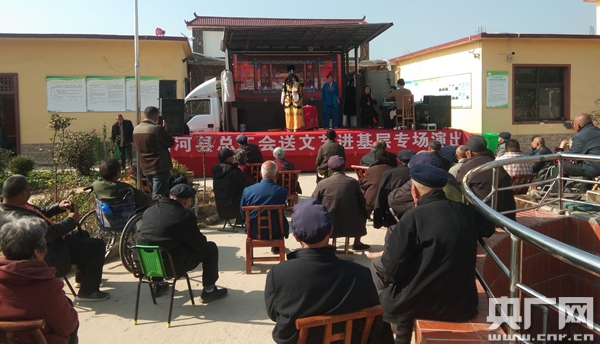 央廣網(wǎng)南陽(yáng)11月16日消息(記者 彭華 通訊員 張千)近日,在唐河縣祁儀鎮(zhèn)的農(nóng)村幸福養(yǎng)老院里,一場(chǎng)文藝下鄉(xiāng)扶貧演出熱鬧開(kāi)場(chǎng),歌曲、戲曲等精彩節(jié)目輪番上演,掌聲與喝彩聲不時(shí)響起,給群眾獻(xiàn)上了一場(chǎng)豐盛的文化大餐。“節(jié)目真好看,給我們的生活帶來(lái)了快樂(lè),感謝黨和政府一直記掛著我們,你看大院里氛圍多好,這樣的活動(dòng)希望可以多舉行幾次!”幸福養(yǎng)老院里某五保戶興奮地說(shuō)。