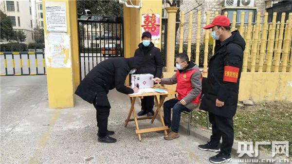 央廣網(wǎng)平頂山1月19日消息(記者 汪寧 通訊員 柳真真 魯潤(rùn)佳)“你好,家里有外地返鄉(xiāng)親戚的請(qǐng)主動(dòng)登記報(bào)備!1月17日,在寶豐縣城關(guān)鎮(zhèn)東城國(guó)際小區(qū)大門口,居民掃碼進(jìn)出小區(qū),物業(yè)值守人員叮囑過往的居民。小區(qū)醒目位置懸掛著疫情防控內(nèi)容的橫幅,門口張貼著“致全市居民的一封信”,小音箱里滾動(dòng)播放著做好疫情防護(hù)的音頻。