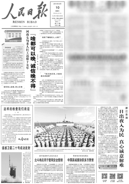 8月10日《人民日報》頭版頭條報道河南人花書增的事跡