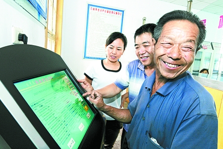 中廣網(wǎng)河南分網(wǎng)消息 據(jù)河南日?qǐng)?bào)報(bào)道: 7月28日,孟州市西虢村農(nóng)民楊金錢(qián)正在查看村務(wù)公開(kāi)事項(xiàng)。該市投入10余萬(wàn)元,在各個(gè)鄉(xiāng)、鎮(zhèn)、辦事處陸續(xù)設(shè)立涉農(nóng)政策、政務(wù)公開(kāi)咨詢觸摸屏。劉金元 郭增強(qiáng) 攝