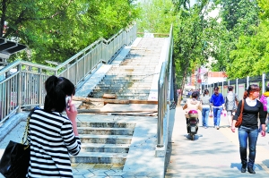 “如果人行天橋開通了,我們會(huì)選擇從天橋上過馬路的!庇浾卟稍L時(shí),幾名學(xué)生說。