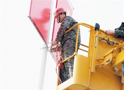 中廣網(wǎng)河南分網(wǎng)消息 據(jù)信陽(yáng)日?qǐng)?bào)報(bào)道:信陽(yáng)第20屆國(guó)際茶文化節(jié)即將到來(lái),信陽(yáng)市組織人員對(duì)中心城區(qū)進(jìn)行綠化、亮化、美化。圖為工作人員正在更換百花園區(qū)域路燈桿上的國(guó)旗。 記者 盧小龍 攝