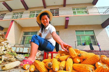 9月22日,武陟縣嘉應(yīng)觀鄉(xiāng)大劉莊村農(nóng)民在晾曬玉米。金秋時節(jié),武陟縣35萬畝玉米陸續(xù)進入收獲期,農(nóng)民緊抓晴好天氣進行搶收和晾曬。 馮小敏 攝