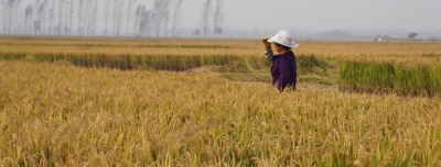 春姑娘在肥沃的黃土地里插上稻秧