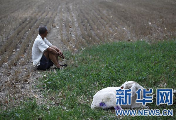 7月23日,在河南省平頂山市寶豐縣商酒務(wù)鎮(zhèn)任莊村,一名放羊的村民望著因墑情不足尚未播種的農(nóng)田。
