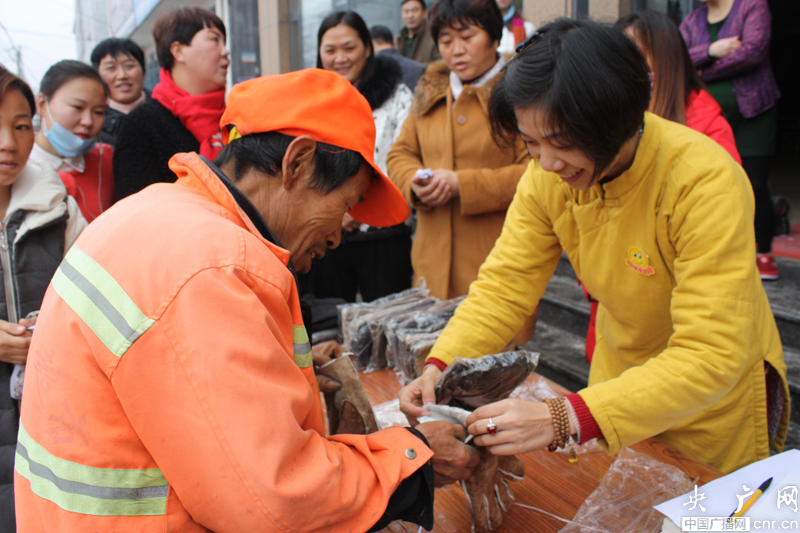 數(shù)十名環(huán)衛(wèi)工現(xiàn)場領(lǐng)取愛心手套