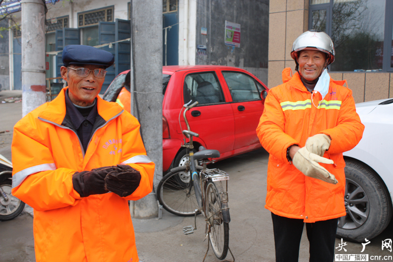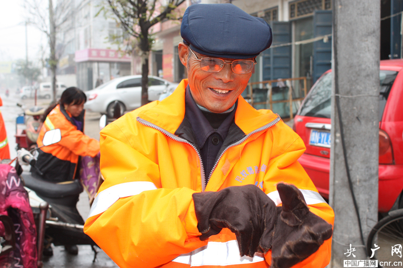 帶上愛心手套的環(huán)衛(wèi)工伯伯喜笑顏開