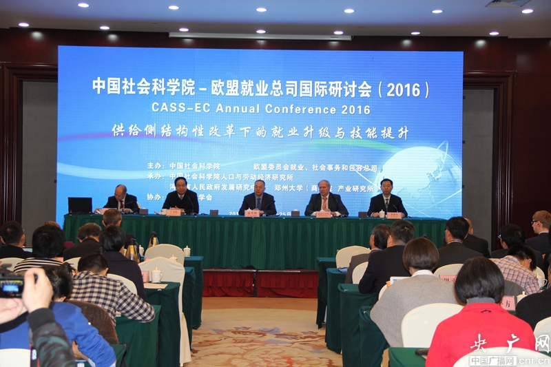 央廣網(wǎng)河南分網(wǎng)10月26日消息 (本網(wǎng)特別報道組)10月24日,“中國社會科學院-歐盟就業(yè)總司國際研討會(2016)——供給側(cè)結(jié)構(gòu)性改革下的就業(yè)升級與技能提升”,在河南省鄭州市召開。會議由中國社會科學院和歐盟委員會就業(yè)、社會事務(wù)和包容總司共同主辦,中國社會科學院人口與勞動經(jīng)濟研究所、河南省人民政府發(fā)展研究中心和鄭州大學聯(lián)合承辦,勞動經(jīng)濟協(xié)會協(xié)辦,是河南乃至全國社會科學領(lǐng)域里的一件盛事。來自歐盟和中國的專家學者齊聚鄭州,共襄盛舉。