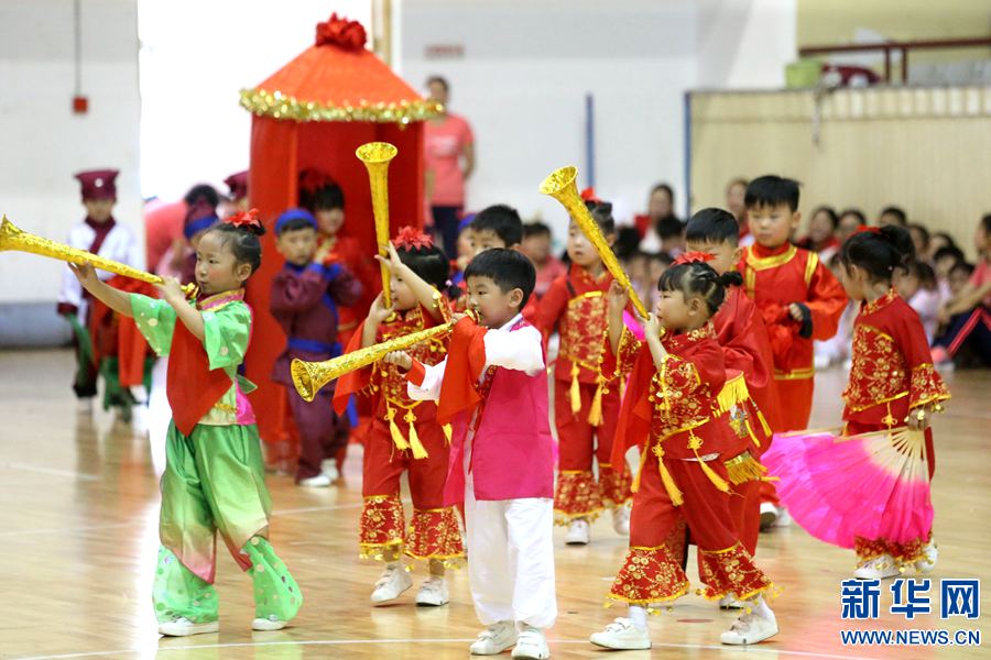 •    5月26日,孩子們正在吹吹打打抬花轎。