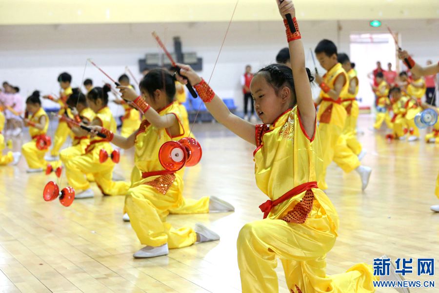 •    5月26日,孩子們正在進行抖空竹表演。