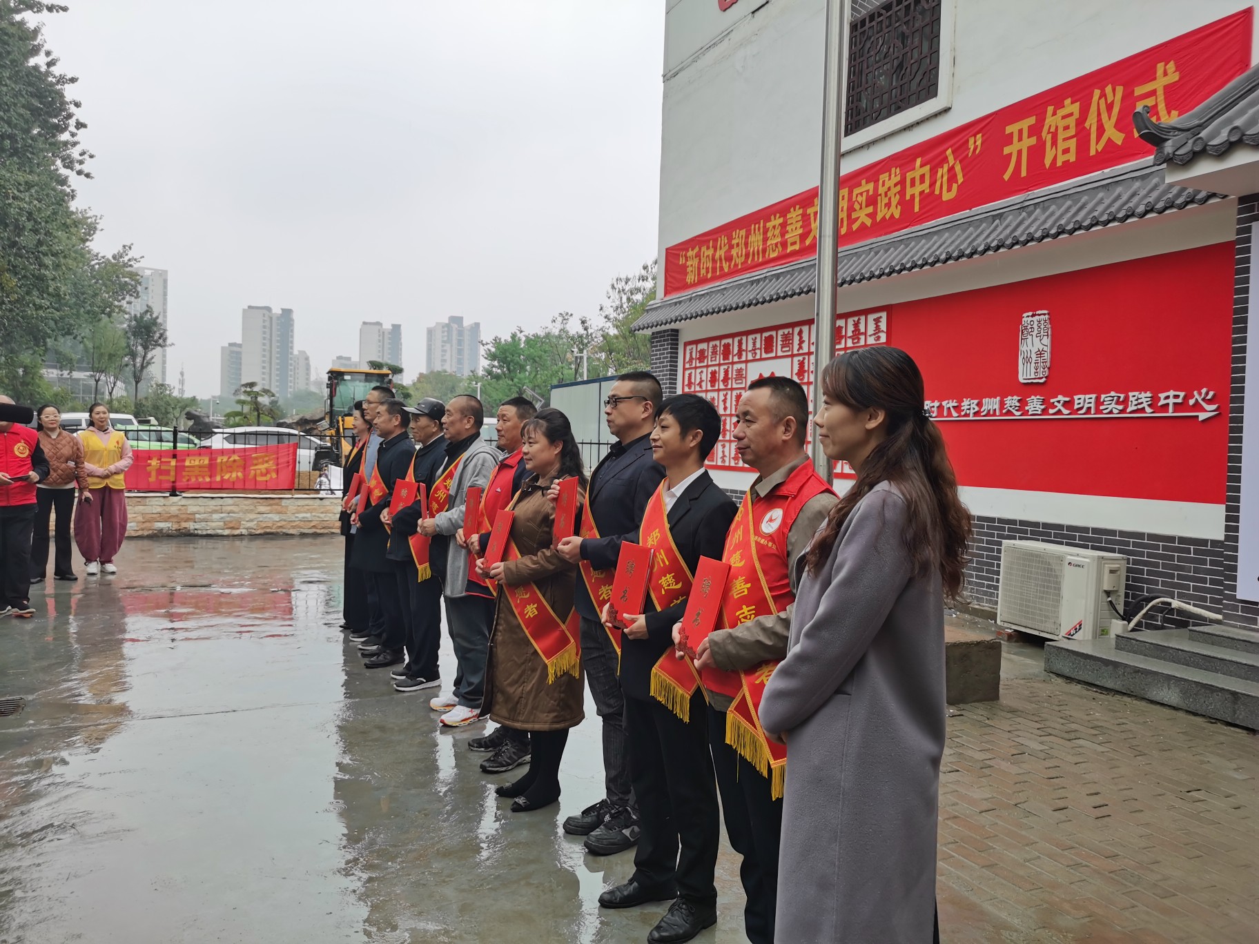 開館儀式上,河南省孝文化促進會創(chuàng)會會長魯獻啟、河南省慈善總會副會長董潁生、鄭州慈善總會會長姚待獻、金水區(qū)人大常委會主任薛燕共同為“新時代鄭州慈善文明實踐中心”揭牌。鄭州市民政局副局長李淑萍、金水區(qū)副區(qū)長張川向王寬、牛振西、王正宇、關驪等鄭州市優(yōu)秀志愿者代表頒發(fā)首批“實踐中心宣傳員”榮譽聘書。