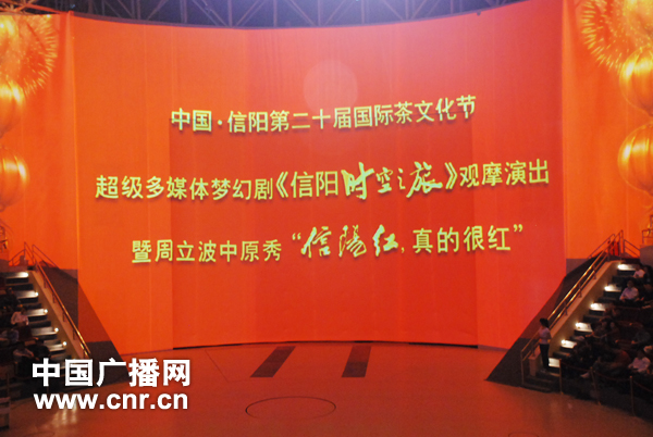 中廣網(wǎng)河南分網(wǎng)消息 4月27號(hào)下午,中國(guó)——信陽第二十屆國(guó)際茶文化節(jié)超級(jí)多媒體夢(mèng)幻劇《信陽時(shí)空之旅》首場(chǎng)觀摩演出暨周立波中原秀“信陽紅,真的很紅”在信陽百花會(huì)展中心時(shí)空劇院舉行。海派清口創(chuàng)始人周立波的“信陽紅,真的很紅!毖莩鲆婚_始,他以“立波秀”的形式,演繹了一場(chǎng)“立波秀茶”。并用幽默的語言,生動(dòng)形象的動(dòng)作講述了自己與“信陽紅”的相知和相識(shí),不時(shí)地引起臺(tái)下觀眾的掌聲和歡笑聲。