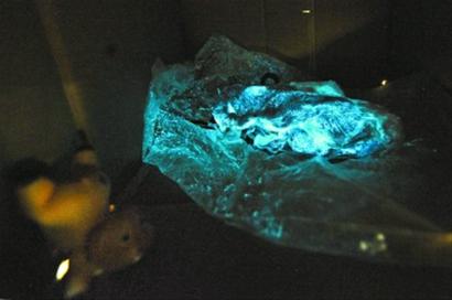 陳女士前天下午在楊高北路的一家菜場(chǎng)買了2斤豬肉。當(dāng)晚家人一起包餃子,用了一部分豬肉。隨后,她把剩下的肉放在廚房的小桌上。夜里11點(diǎn),陳女士起床準(zhǔn)備上洗手間,突然看見廚房方向有隱約的藍(lán)光,打開燈后卻沒見到異樣。陳女士再次將燈關(guān)掉,藍(lán)光再次出現(xiàn),她壯著膽子走過去,伸手一摸,發(fā)現(xiàn)軟軟的,原來是豬肉。陳女士一開始以為是光線問題,于是把豬肉提起來,在黑暗中走動(dòng)。她發(fā)現(xiàn),瑩瑩的藍(lán)光跟著豬肉動(dòng)。隨后,她仔細(xì)盯著豬肉看,發(fā)現(xiàn)是肉在發(fā)光。