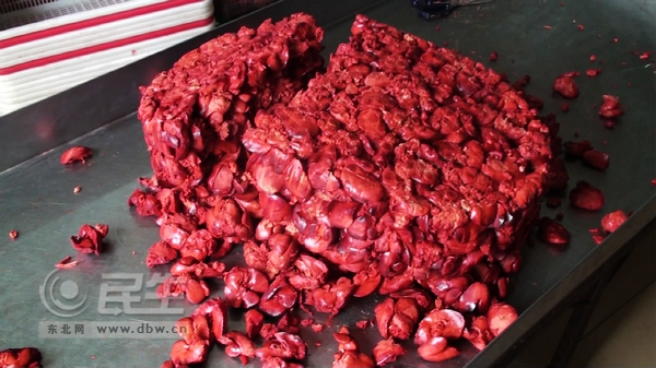 待包裝的雞肝。東北網(wǎng)記者陳靜攝