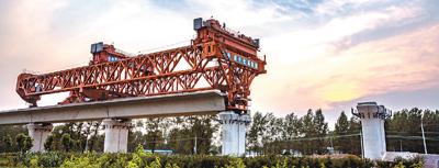 6月27日,中國鐵建十七局的員工披著晚霞在架梁施工中。截至目前,鄭萬高鐵河南段線下工程已經(jīng)基本完工。鄭州至萬州高速鐵路簡稱鄭萬高鐵,是鄭渝高鐵(鄭州至重慶)的重要組成部分,同時(shí)也是聯(lián)系中原地區(qū)和西南地區(qū)的主要高速客運(yùn)通道,全線長818公里,設(shè)計(jì)行車速度為350公里/時(shí)。通車后,鄭州到重慶車程時(shí)間將縮短至4小時(shí)以內(nèi)。