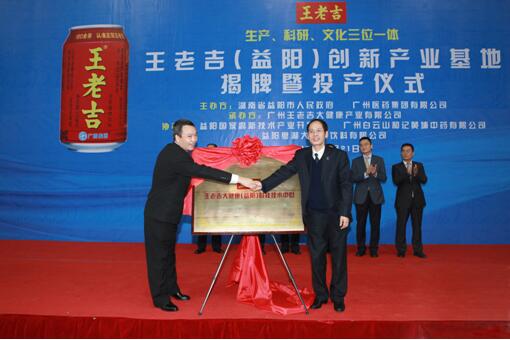 益陽市高新區(qū)工委書記陶世群與廣州王老吉大健康產(chǎn)業(yè)有限公司總經(jīng)理翁少全為王老吉益陽科研技術(shù)中心揭牌