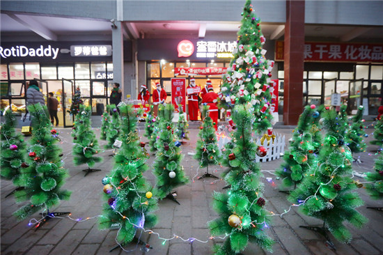 掛滿愿望的圣誕樹前,同學(xué)們在許下心愿后,紛紛拿出手機自拍留念。