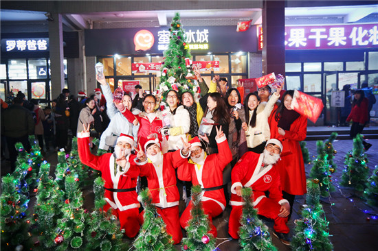 12月18日,在鄭州龍子湖大學(xué)城某飲品店舉行的圣誕許愿活動中,一女生喜獲商家五萬元助夢金引圍觀。