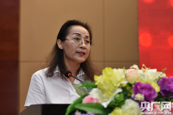 圖為勁牌公益慈善基金會秘書長盧青作工作報告
