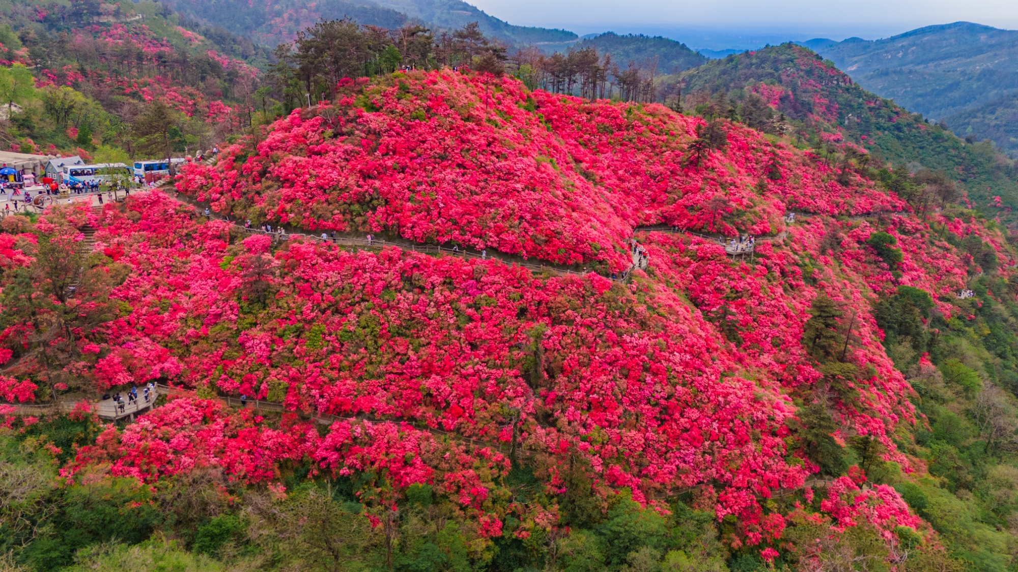 4月初,武漢云霧山迎來一年中最美的時節(jié),萬畝野生杜鵑迎來盛花期,將連綿的山巒裝點成一幅絢麗的春日畫卷,吸引著全國各地的游客共赴這場“花海之約”。
