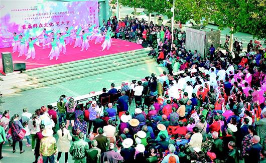11月4日,東湖高新區(qū)首屆群眾文化藝術(shù)節(jié)落幕。此次藝術(shù)節(jié)展演作品均來自各街道居民,形式多樣,講的是百姓身邊事,唱的是群眾心里話,演的是人民生活情,尤其突出了東湖高新區(qū)建區(qū)30年光谷建設(shè)日新月異的風(fēng)貌。圖為在豹澥街巡演時(shí),吸引大量觀眾。(湖北日報(bào)全媒記者魏錸 攝)
