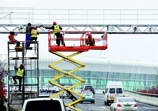 12月21日,工程人員正在武漢天河機場調(diào)試交通管理監(jiān)控設(shè)備。天河機場智能交通管理系統(tǒng)將于2019年1月1日起正式投入使用。為提高通行效率,對在T3航站樓出發(fā)層無故逗留超過7分鐘以上的社會車輛,將依法處以記3分、罰款100元的處罰。據(jù)悉,T3航站樓出發(fā)層通行、停留時間為7分鐘的時長,是該系統(tǒng)經(jīng)過實地調(diào)研取樣和時空大數(shù)據(jù)分析后,最終確定的。
