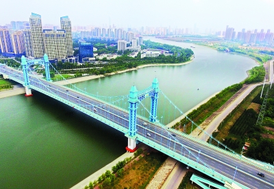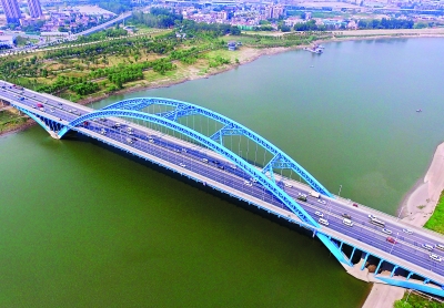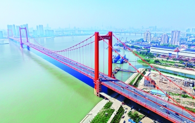 鸚鵡洲長江大橋呈現(xiàn)國際橘色調