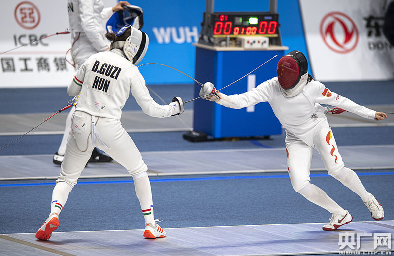 圖為軍運(yùn)會(huì)現(xiàn)代五項(xiàng)女子團(tuán)體賽擊劍單項(xiàng)比賽中 央廣網(wǎng)記者黃炎秋 攝
