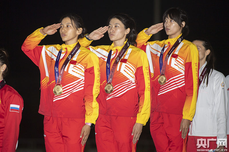 圖為軍運(yùn)會(huì)現(xiàn)代五項(xiàng)女子團(tuán)體賽頒獎(jiǎng)儀式 央廣網(wǎng)記者黃炎秋 攝