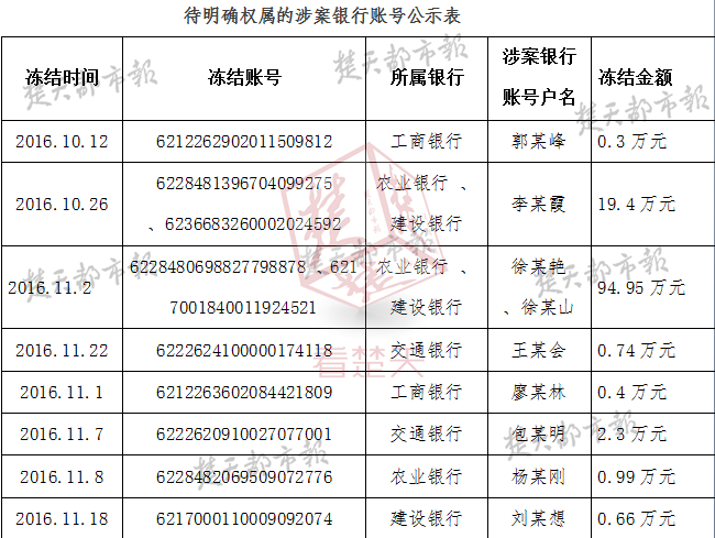 附:待明確權(quán)屬的涉案銀行賬號公示表
