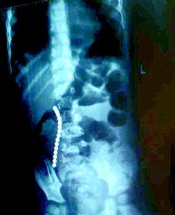 7月10日,元元被送到了武漢兒童醫(yī)院。經(jīng)過詳細(xì)檢查,導(dǎo)致元元嘔吐、高燒不退的罪魁禍?zhǔn)捉K于找到了,原來是隱藏在孩子肚子里的一串金屬珠子。醫(yī)生詳細(xì)了解病情后,懷疑元元已經(jīng)出現(xiàn)了嚴(yán)重的腸穿孔,必須立即接受治療。經(jīng)過手術(shù),醫(yī)生終于將這個真兇從元元的肚子里取了出來,孩子也轉(zhuǎn)危為安。