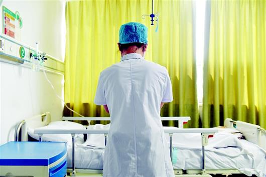 圖為:醫(yī)生在摘取眼角膜前默哀