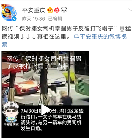 保時(shí)捷女車主當(dāng)街掌摑男車主 警方:女子違章扣2分罰250元