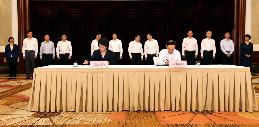 中央廣播電視總臺與上海市人民政府于2018年10月8日舉行深化戰(zhàn)略合作框架協(xié)議簽約儀式。中央廣播電視總臺第一個區(qū)域總部和地方總站——長三角總部和上海總站同時在滬揭牌。中共中央政治局委員、上海市委書記李強出席活動。中宣部副部長、中央廣播電視總臺臺長慎海雄,上海市委副書記、市長應勇以及上海市領導周慧琳、諸葛宇杰等出席。
