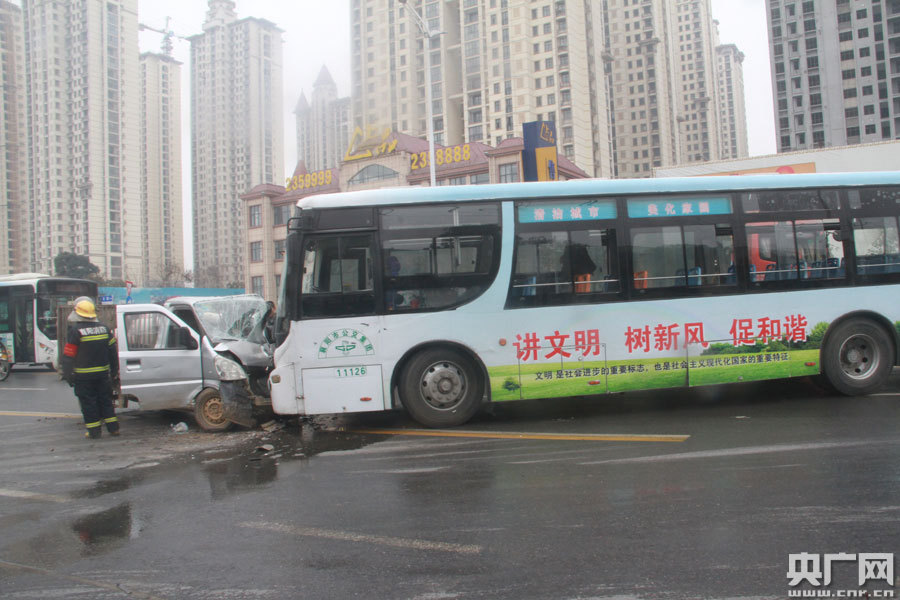 央廣網(wǎng)襄陽1月18日消息(記者熊峰 通訊員王剛)1月18日上午,湖北省襄陽市航空路發(fā)生一起交通事故,一輛小型貨車同公交車迎面相撞。事故導(dǎo)致小貨車車頭變形,駕駛員被困,公交車上一名乘客受輕傷,路面上灑滿車輛零部件和玻璃碎片。