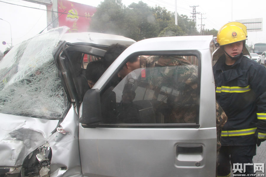 襄陽發(fā)生兩車相撞事故 一名司機被困駕駛室