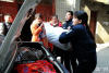 大家齊心協(xié)力幫川嫂蔡紅搬運行李。 -