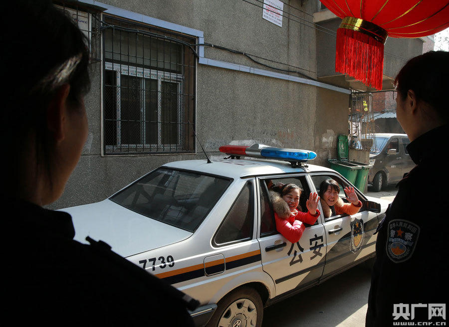 川嫂蔡紅〔左一〕和她的返鄉(xiāng)行李隨警車開往武漢火車站。