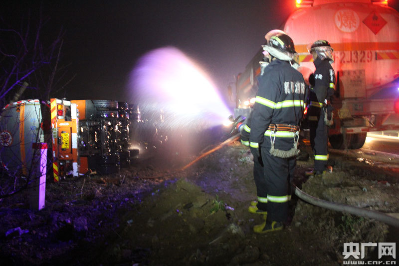 央廣網(wǎng)襄陽2月16日消息(記者熊峰 通訊員肖亞怡)2月16日凌晨1時34分,一輛24噸滿載甲醇槽罐車,在行經(jīng)316國道棗陽至七方鎮(zhèn)齊集路段八公里碑處時發(fā)生側(cè)翻,車上裝載的甲醇迅速泄漏。接警后,棗陽市消防大隊迅速調(diào)派3臺消防車、20名消防官兵往現(xiàn)場救援。經(jīng)過近3個小時的努力,險情被成功排除。