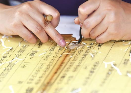 圖為:古籍修復(fù)師的工作日常