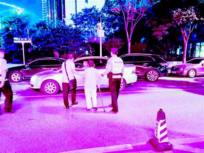 8日晚8時許,中央商務(wù)區(qū)警務(wù)站民警周銳、輔警張萬利巡邏至云杉路一拐彎處時,發(fā)現(xiàn)一位老婆婆坐在路邊地上,雙手握著拐杖,滿臉焦慮。婆婆旁邊,還放著一碗沒有吃完的熱干面。周銳上前詢問,老人卻語無倫次,連自己的姓名、家庭住址都說不清楚。