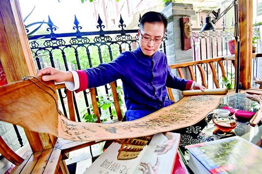 圖為:創(chuàng)作中的劉潔全神貫注